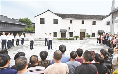 随后,习近平乘车来到位于绍兴的浙东运河文化园考察。他步行察看古运河河道和周边历史文化遗存,详细了解浙东运河发展演变史和当地合理利用水资源、推进大运河保护等情况。习近平强调,大运河是世界上最长的人工运河,是十分宝贵的文化遗产。大运河文化是中国优秀传统文化的重要组成部分,要在保护、传承、利用上下功夫,让古老大运河焕发时代新风貌。