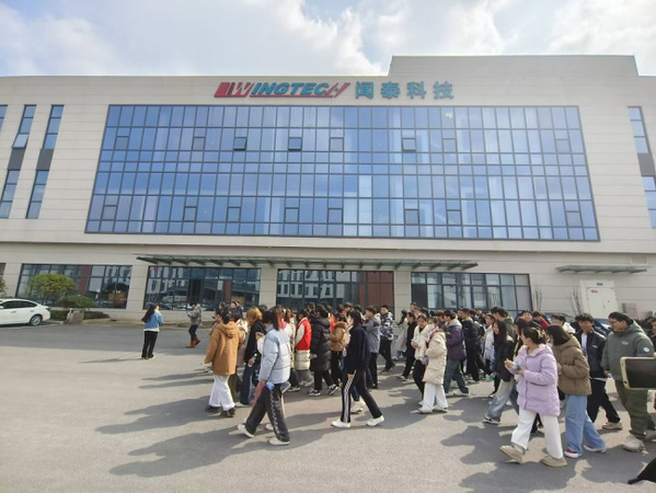 在闻泰集团,学子们参观了闻泰园区、展厅、食堂及职工宿舍,观看了企业宣传片,了解了该集团半导体IDM、光学模组、通讯产品等产业链布局。学子们表示:“我们能到企业实地参观,了解企业对人才的需求和要求,也体验到了企业的生产和生活,这为我们今后的实习和工作提供了更多选择的机会。这样的活动多多益善。”