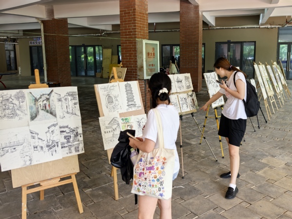 画展汇聚了众多学生的写生画作,内容涉及城市街景、风情古镇、自然美景等多彩主题,充分展现了作品的丰富性与多样性。这些作品之中,有的以速写线条精细勾勒出一砖一瓦之细节;有的运用水彩之技,渲染出独特之氛围;另有作品以水粉颜料之丰富色彩,显得格外引人注目。每一副作品都凝聚着学生们的心血和对艺术的热爱,让观者身临其境,感受到了学生们在艺术实践课程中的进取精神。