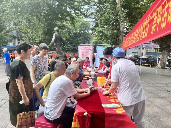 在健康义诊区,弘康中医院的医疗志愿者,用中医AI智能把脉机器人,为居民提供免费诊脉及血糖、血压等医疗健康检查。居民毛明胜说:“没想到在家门口就能享受免费检查,真贴心!”