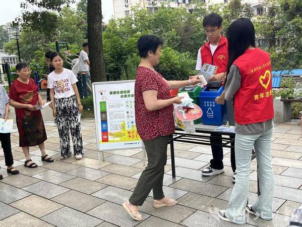 湖北日报客户端讯(通讯员吴大青)7月16日上午,黄石市黄石港区覆盆山社区联合党员志愿者与mksports在线登录_mk(中国)一站式服务体育的大学生志愿者,于辖区内口袋公园开展垃圾分类的宣传活动。