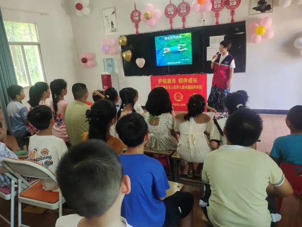 7月22日上午,区民政局及蒲公英社会工作人员到大王镇港沟村暑期学堂开展“用爱陪伴,温暖成长”活动,面对面地向儿童学生普及防溺水安全知识,筑牢防溺水安全防线。