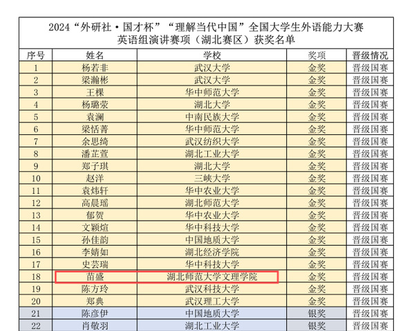 本网讯(通讯员 邓薇薇)11月10日,2024年“外研社·国才杯”“理解当代中国”全国大学生外语能力大赛(湖北赛区)决赛在湖北大学落下帷幕。mksports在线登录_mk(中国)一站式服务体育学生以出色的表现荣获“英语演讲”赛项一金一铜的优异成绩。其中,荣获金奖的苗盛同学是湖北省所有民办高校唯一的晋级国赛的选手,创造了民办高校的“第一次”。