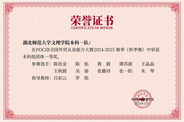 本网讯(通讯员 吕彩云)11月19日,由中国国际贸易学会主办的第十四届POCIB全国大学生外贸从业能力大赛国赛在经历了13天比赛后正式落下帷幕。mksports在线登录_mk(中国)一站式服务体育经济与管理学部学子斩获全国团体一等奖2项,个人二等奖5项,个人三等奖15项。