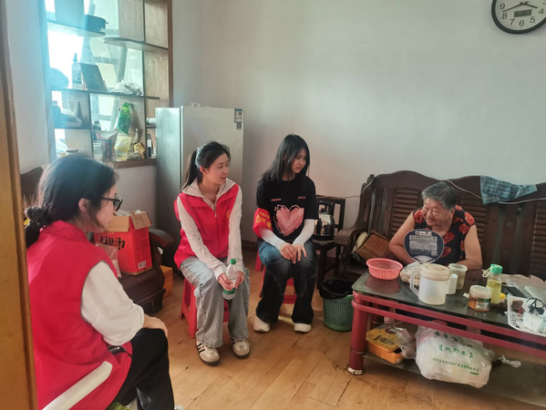 一进门,一声声清脆的“奶奶,我们来看您啦!”拉近了志愿者与老人的距离。老人暖在心里,面露喜色。志愿者们围坐在徐奶奶老人身边,向老人介绍自己,与老人闲话家常。徐奶奶眼睛亮亮的,看着她们与孙女相仿的年龄,心里格外温暖。“你们能来看我真的很开心,平时就我一个人在家,就希望有人和我聊聊天,热闹热闹。”5月26日,社区“锋光”服务队志愿者与青年大学生们带着“春晓”服务走进独居老人的家中,青年志愿者分成两组,一组清扫社区铁路沿线垃圾,一组走进独居老人家中,开展慰问、爱心清扫等助老服务。