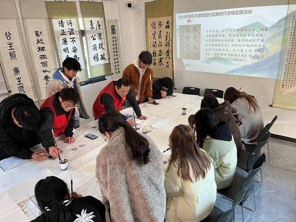 此次活动旨在弘扬中华优秀传统文化,加强社区文化建设,促进社会和谐。活动中,来自湖北理工学院的书法爱好者巫东攀通过现场挥毫、作品展示、经验分享等形式,展现了书法艺术的独特魅力和深厚底蕴。大学生们在巫东攀的指导下,学习了毛笔书写的技巧,并尝试创作了自己的书法作品。来自新能源汽车技术专业的志愿者秦思婷说:“这次活动不仅让我感受到了书法艺术之美,也加深了我对传统文化的理解。”