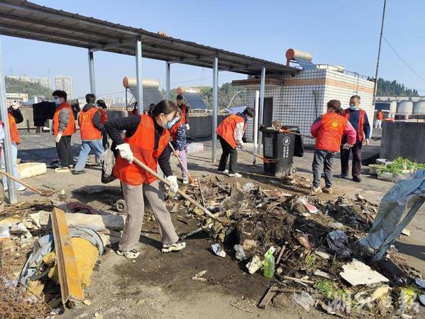 3月19日上午,在社区党委书记胡玲玲的指挥下,坚持“统一组织、分工负责、集中整治、常态保持”的工作原则,组织全体力量,重点对屋顶积存垃圾、乱堆杂物、闲置物品、私自圈占的“空中垃圾场”进行清理。