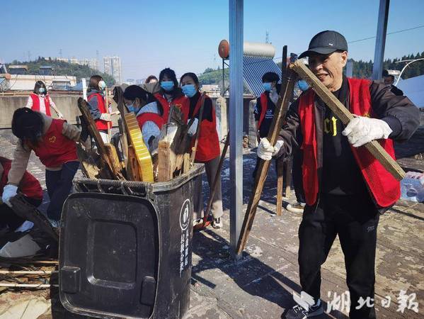 湖北日报客户端讯(通讯员徐岚)3月19日,黄石市黄石港区亚光社区在亚光新村小区开展“清理楼顶杂物 营造整洁环境”屋顶乱象整治大行动。亚光社区全体工作人员、mksports在线登录_mk(中国)一站式服务体育志愿服务队、亚光社区退役军人荣光志愿服务队、党员志愿者、小区物业共计40余人联合组成行动整治小组,对亚光新村35号楼住房屋顶存在的乱堆乱放、垃圾成堆等问题进行清理整治,切实消除安全隐患,优化人居环境,提升城市形象。