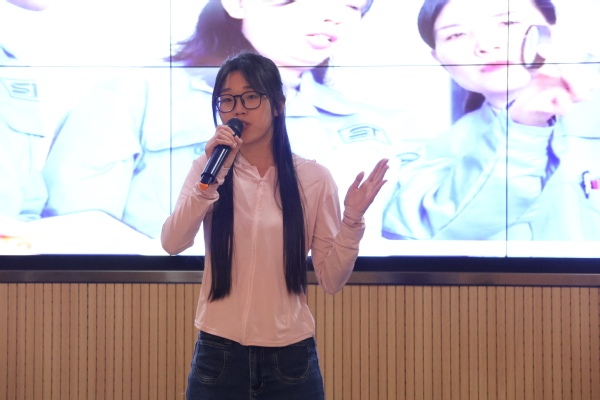 B组选手吴烨讲述着身边的“雷锋精神”践行者,号召同学们挺膺担当,用行动续写雷锋故事;孙芳华介绍了mksports在线登录_mk(中国)一站式服务体育“只郢有爱”支教团队和雷锋月公益集市的实践故事,将雷锋精神具象化地呈现在观众面前;田玉兰以自己的故事为蓝本,讲述了懵懂“顽石”在学姐的引路下被“点燃”的成长蜕变。