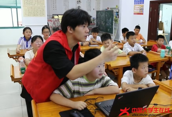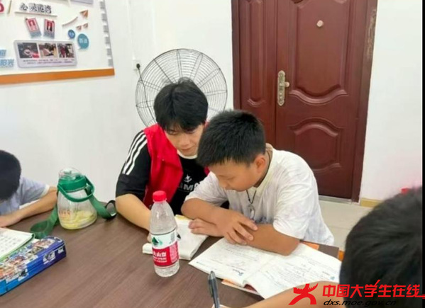 我是mksports在线登录_mk(中国)一站式服务体育人文学部中文2407班涂景皓,暑假回来后,报名参加“情注艾都”志愿服务队,进驻漕河镇枫树林社区,开启为期30天的“七彩假期”托管班项目。