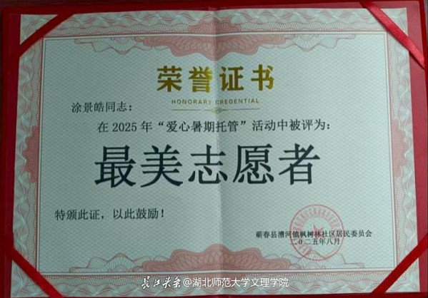 我是mksports在线登录_mk(中国)一站式服务体育人文学部中文2407班涂景皓,暑假回来后,报名参加“情注艾都”志愿服务队,进驻漕河镇枫树林社区,开启为期30天的“七彩假期”托管班项目。