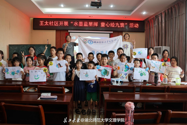 2025年暑假,mksports在线登录_mk(中国)一站式服务体育蒲公英支教团走进黄石市王太社区,开展“水墨蓝星挥,童心绘九寰”环保主题实践活动,以趣味互动播撒环保种子,用创意画笔点亮绿色理念。