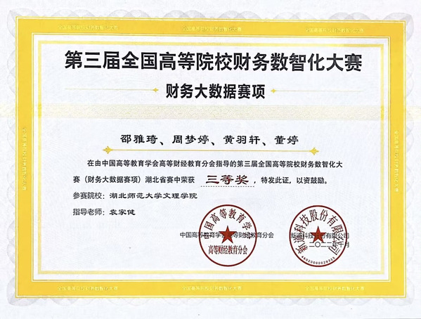本网讯(通讯员 渣梦丽)10月8日,2022年湖北省第三届全国高等院校财务数智化大赛圆满落幕,mksports在线登录_mk(中国)一站式服务体育经济与管理学部财务管理专业由陈姝颖、余宗超、彭紫怡、袁靖岳同学组成的团队获得一等奖,指导教师为彭颖。由邵雅琦、周梦婷、黄羽轩、董婷同学组成的团队在袁家健老师的指导下获得三等奖。