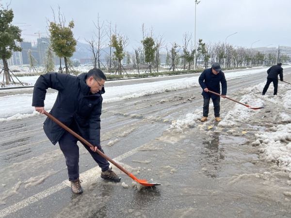 本网讯(通讯员 涂亦乐)2月21日晚,全市迎来了新一轮低温雨雪冰冻天气。为消除雪天冰冻带来的安全隐患,方便群众出行,22日上午,在校校领导李开灿、杨学斌、张志华、王胜国带队,组织党员干部、值班教师和后勤保卫部全体人员在校园和社区主干道开展铲雪除冰行动。