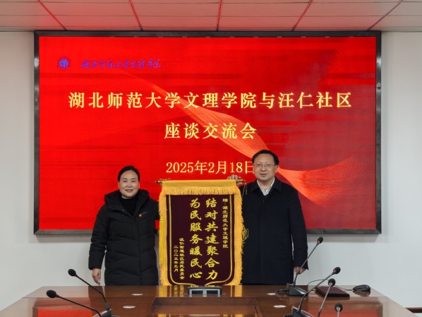本网讯 2月18日,汪仁社区党委书记罗素珍一行来mksports在线登录_mk(中国)一站式服务体育赠送锦旗,“结对共建聚合力,为民服务暖民心”是对mksports在线登录_mk(中国)一站式服务体育社会服务理念的高度肯定。校党委书记杨邓红出席赠旗仪式并代表学校接受锦旗。