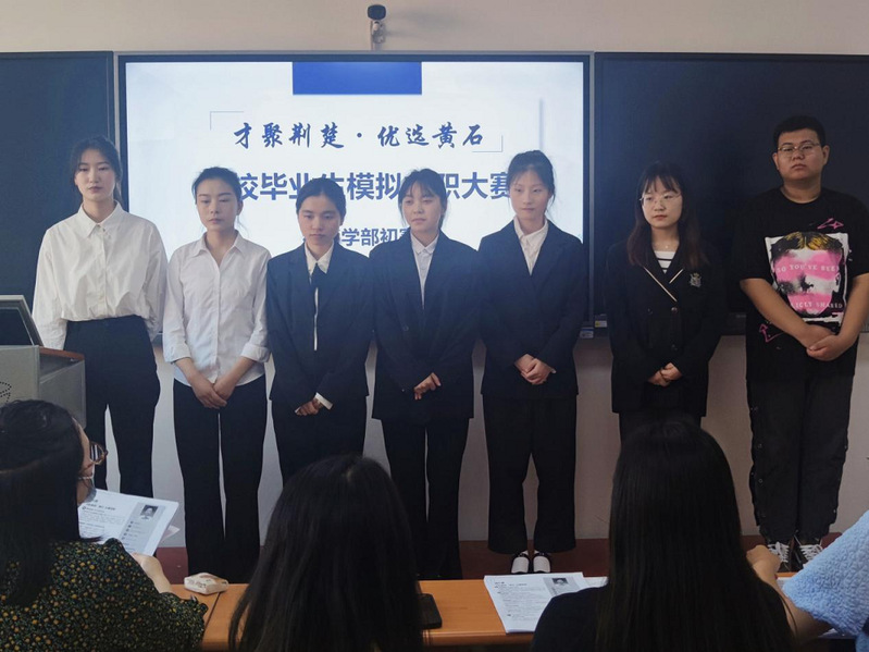 为了让同学们更好地了解就业流程,增强大学生的应聘能力与心理素质,响应“才聚荆楚·优选黄石”高校毕业生来黄留黄就业的号召,56日下午1500,经管学部在2号实验楼407举办了大学生模拟求职大赛初赛学部共有七名选手参加此次比赛也邀请了经管学部专任教师陈媛、张甜,教学秘书曾雨蓓,以及辅导员吕彩云作为此次比赛的评委老师