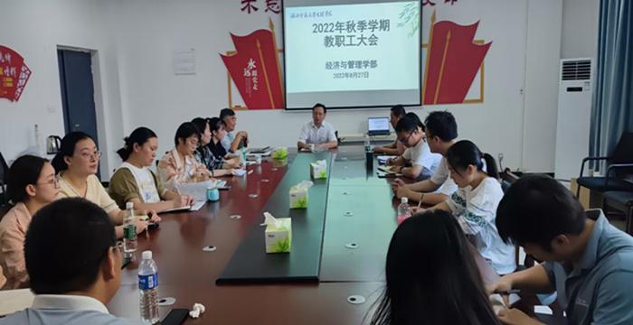 2022827日上午9,经济与管理学部于2号实验楼213会议室,召开了2022年秋季学期学部教职工大会。参加此次会议的有校党委书记杨邓红以及经管学部全体教职员工,会议由学部主任商树松主持。