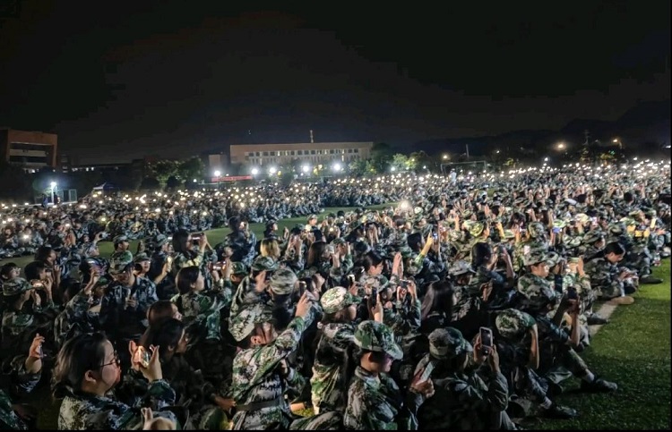向前向前向前!我们的队伍像太阳!”晚上足球场响起了此起彼伏的歌声,同学们正在教官的带领下学习着军歌。从《团结就是力量》到《中国人民解放军军歌》,同学们认真地学,大声地唱,全神贯注的参与其中,白天的艰苦训练与晚训的轻松愉悦相结合,同学们体验了不一样的军旅生活。