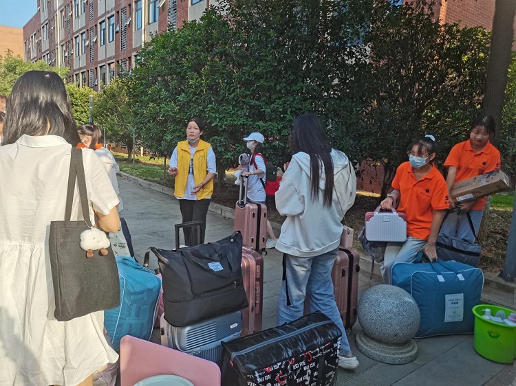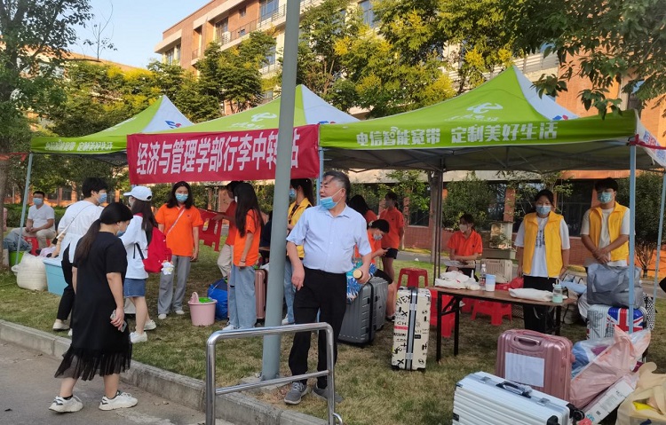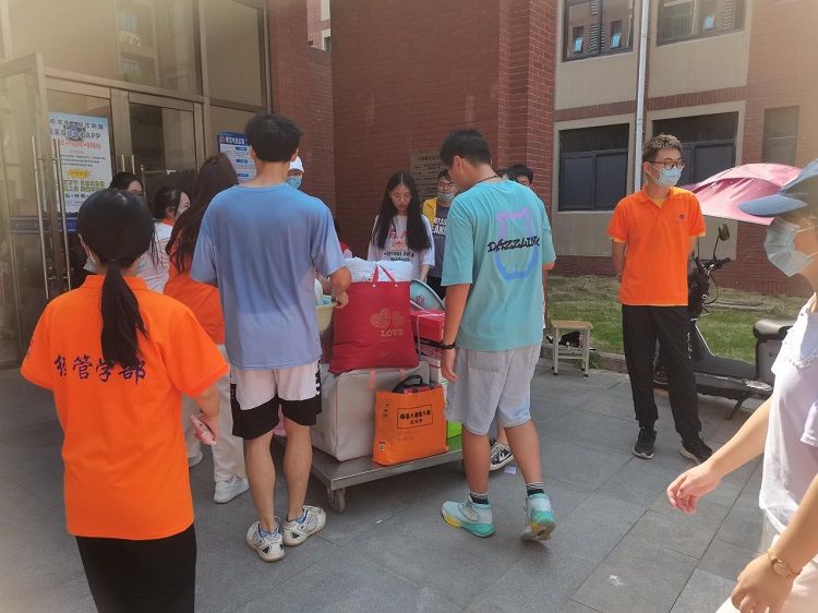 疫情防控尤当紧,为迎接新生的到来,mksports在线登录_mk(中国)一站式服务体育做足了准备。学校在火车站、汽车站设立接待点,安排了大巴车将新生与家长送至学校;在校内迎新联合办公室内设置了各学部迎新点,在2号实验楼与行政楼之间设置了各学部行李中转站。在经管学部主任商树松的领导下,学部在校内各点均配备了迎新教师和志愿者。学生和家长一到达学校,校门口的志愿者们便立刻上前迎接,引导他们去迎新联合办公室学部迎新点办理报到手续,办理完手续再帮助新生把行李搬运上接驳车送至宿舍楼,宿舍楼下早已有志愿者们等候,帮助新生将行李点对点搬至各宿舍。经管学部的志愿者们身着亮丽的橘红色志愿者服装,他们不怕炎热,不辞辛苦,校门口、学部迎新点、行李中转站、学生宿舍楼下等地方都流动着他们忙碌的身影,那一抹橘红色为学校增添了一道亮丽的风景线。