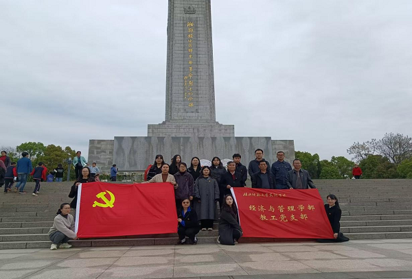 202345日,时值清明节,经济与管理学部教工党支部组织全体党员教师和入党积极分子前往湘鄂赣边区鄂东南革命烈士陵园,开展以“深悟践行二十大,追思缅怀忆先烈”的党史学习教育主题实践活动。重温红色革命峥嵘岁月,感受革命先烈不屈不挠的斗志和无私无畏的精神,传承红色基因,厚植理想信念。