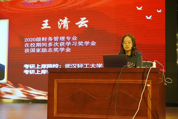 本次分享会邀请了王清云、张思梦、皮鹏三位20级考研上岸的学生作为主讲嘉宾,他们择校、复习策略、心态调整等方面给出了宝贵的建议。