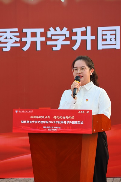 经管学部学生张燕作国旗下演讲。她号召青年一代要以忠诚与奋斗为根基,将个人理想与国家命运紧密相连,在新时代的赛道上奋勇争先,贡献青春力量,追逐梦想,创造属于自己的辉煌未来。