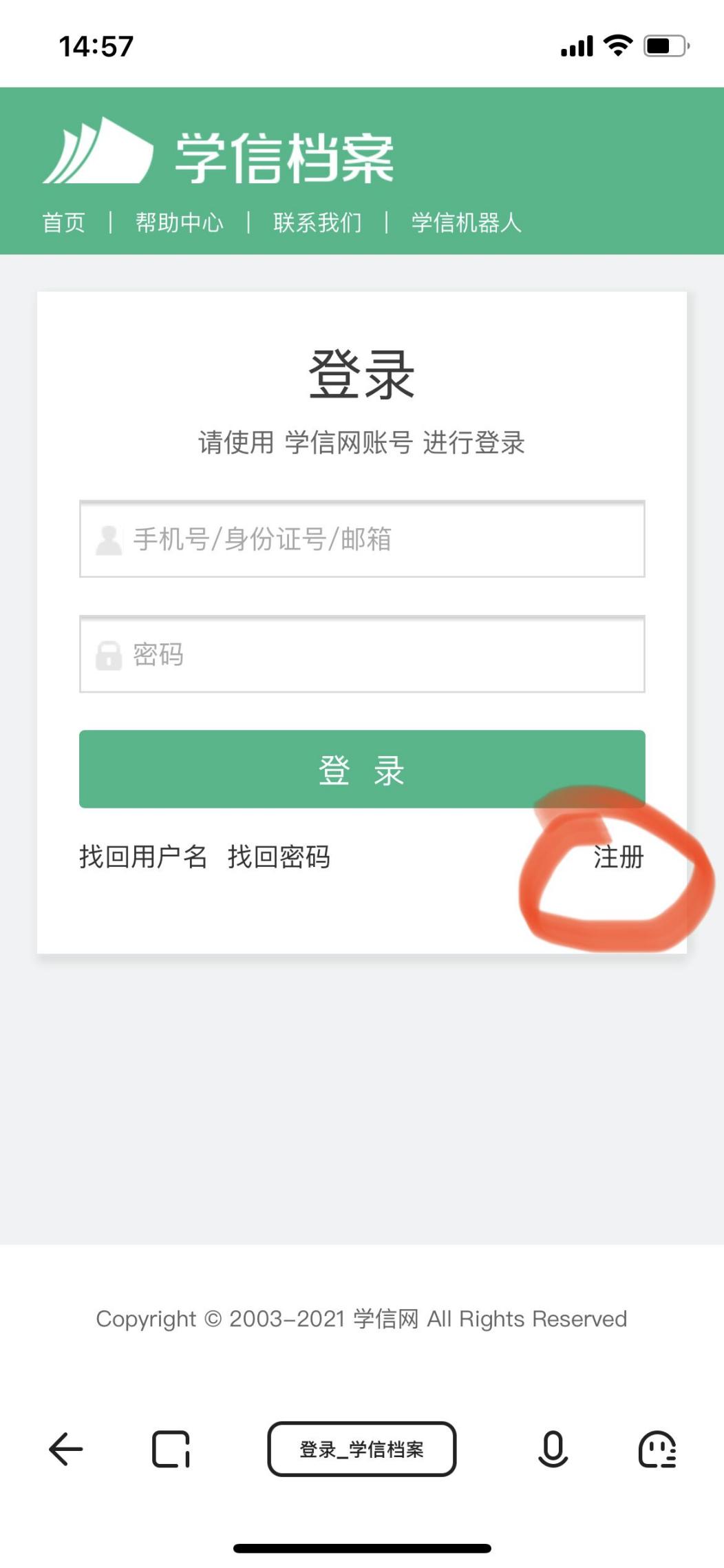 3.如果学信网提示学生所使用的身份证号码已经被注册使用,导致无法注册及登录,请同学首先确认自己是否因入伍或其他原因曾经注册过学信网的帐号。如果注册过,可通过找回用户名、找回密码功能找回自己原有的帐号进行登录。如果未注册过帐号的,请按照学信网提示的解决办法来完成注册。