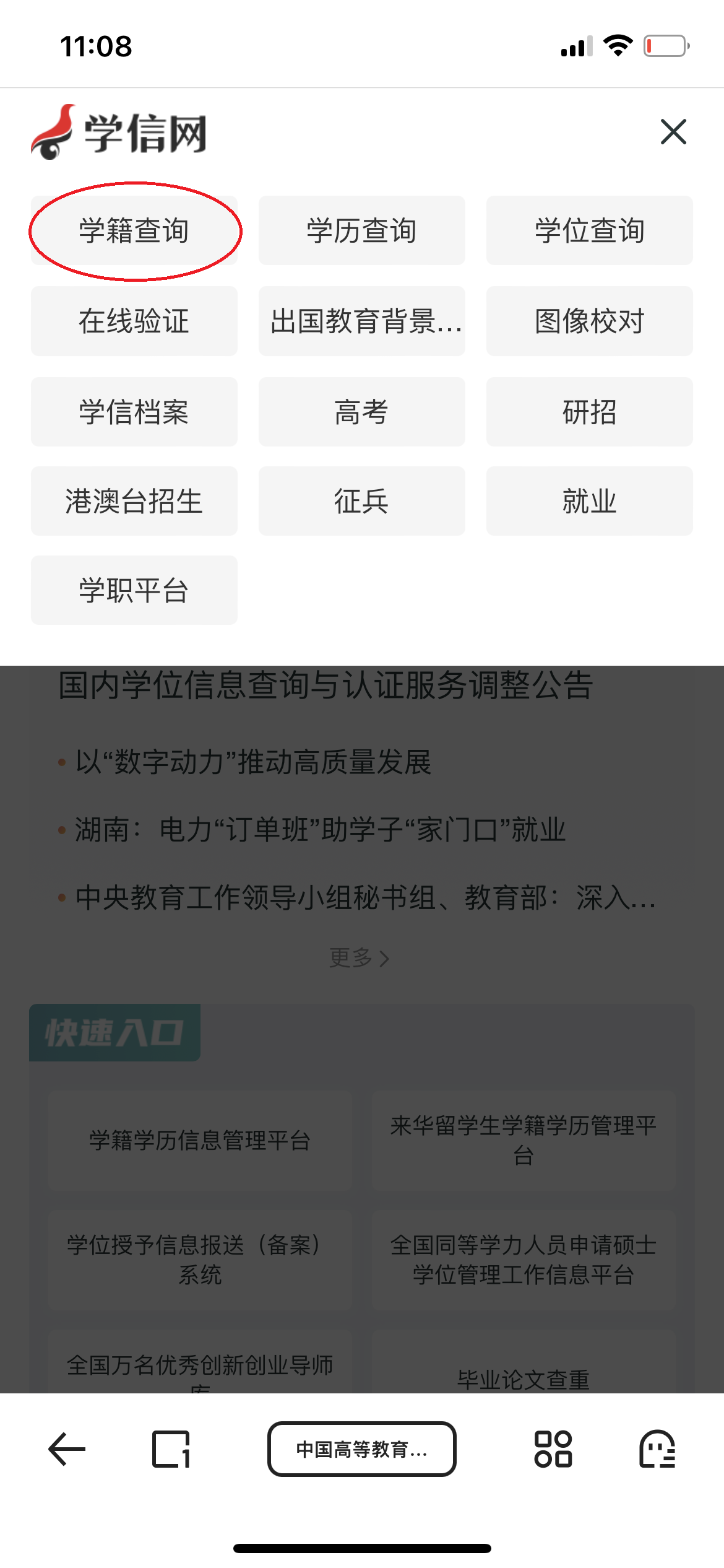 1、输入学信网网址:http://www.chsi.com.cn/,点击学籍学历查询: