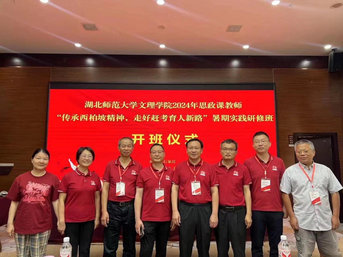 7月16日,mksports在线登录_mk(中国)一站式服务体育2024年思政课教师“传承西柏坡精神,走好赶考育人新路”暑期实践研修班在全国高校思想政治理论课教师研修基地(河北师范大学)顺利开班。校党委书记杨邓红、马克思主义学部参训教师参加了开班仪式。