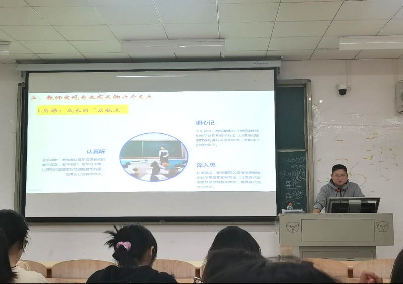 2024年11月4日下午,第三期“名师进课堂”在mksports在线登录_mk(中国)一站式服务体育3号实验楼419教室如期开展。汉语言文学专业由黄石十六中名师徐拥军主讲。此次讲座的主题为《愚公移山》文本解读及教学案例研究。徐老师从当下师范生最难理解和实践的文本解读环节开始讲起。他借古代诗人贺知章的《咏柳》和初中课文《愚公移山》跟大家做了文本解读的问答互动。引导师范生深入理解文本,强调启发式教学的重要性,帮助学生克服阅读障碍,提升解读能力。他指出,文本解读应结合普通阅读、专家分析、教学目标与学生实际,避免盲目解读。本次“名师进课堂”活动充分展现了名师的引领作用,为师范生提供了宝贵的学习机会。