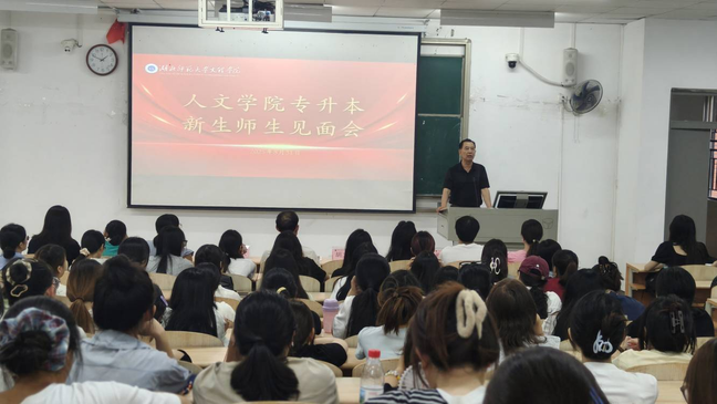 下午15时,人文学院专场专升本新生师生见面会如期举行。会上,人文学院院长熊子延围绕专升本学习情况展开详细介绍,着重强调“专心、静心、恒心”的学习态度,为新生明确学业方向、细化成长要求;人文学院党总支书记周景斌向新生致以热烈欢迎,送上“梦想成真”的祝福,并从珍惜学习机遇、恪守校规校纪、做好全方位安全防护(含政治安全、人身财产、交通及反诈防诈)、团结互助共进步四个维度提出期望,助力新生快速适应校园生活。
