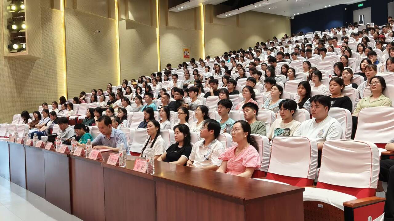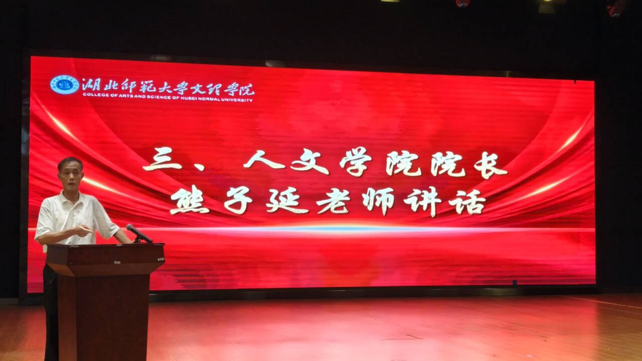 人文学院院长熊子延通过学院介绍与思想引领,为新生们打开认知大门。他详细梳理学院的历史沿革、专业优势、师资力量与学风特色,让新生们深刻感受到人文学科的深厚底蕴与发展活力。同时,他寄语新生:要以北宋张载“为天地立心,为生民立命”的经世济民思想为指引,树立正确的世界观与价值观;要掌握科学的学习方法,在“皓首穷经”的钻研中融合人文传统与现代科学思维;更要努力成长为“学有所爱、学有所专、学有所能、学有所用”的优秀人才,在人文领域绽放光彩。