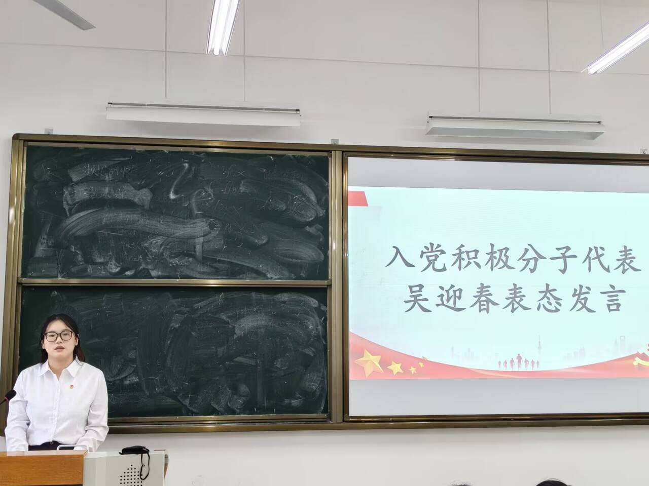 随后,入党积极分子代表吴迎春作表态发言。她承诺,将和全体学员一道,严格遵守培训制度,端正入党动机;潜心学习党的理论知识,提升政治素养;在实践中勇于担当、乐于奉献,以实际行动向党组织靠拢。