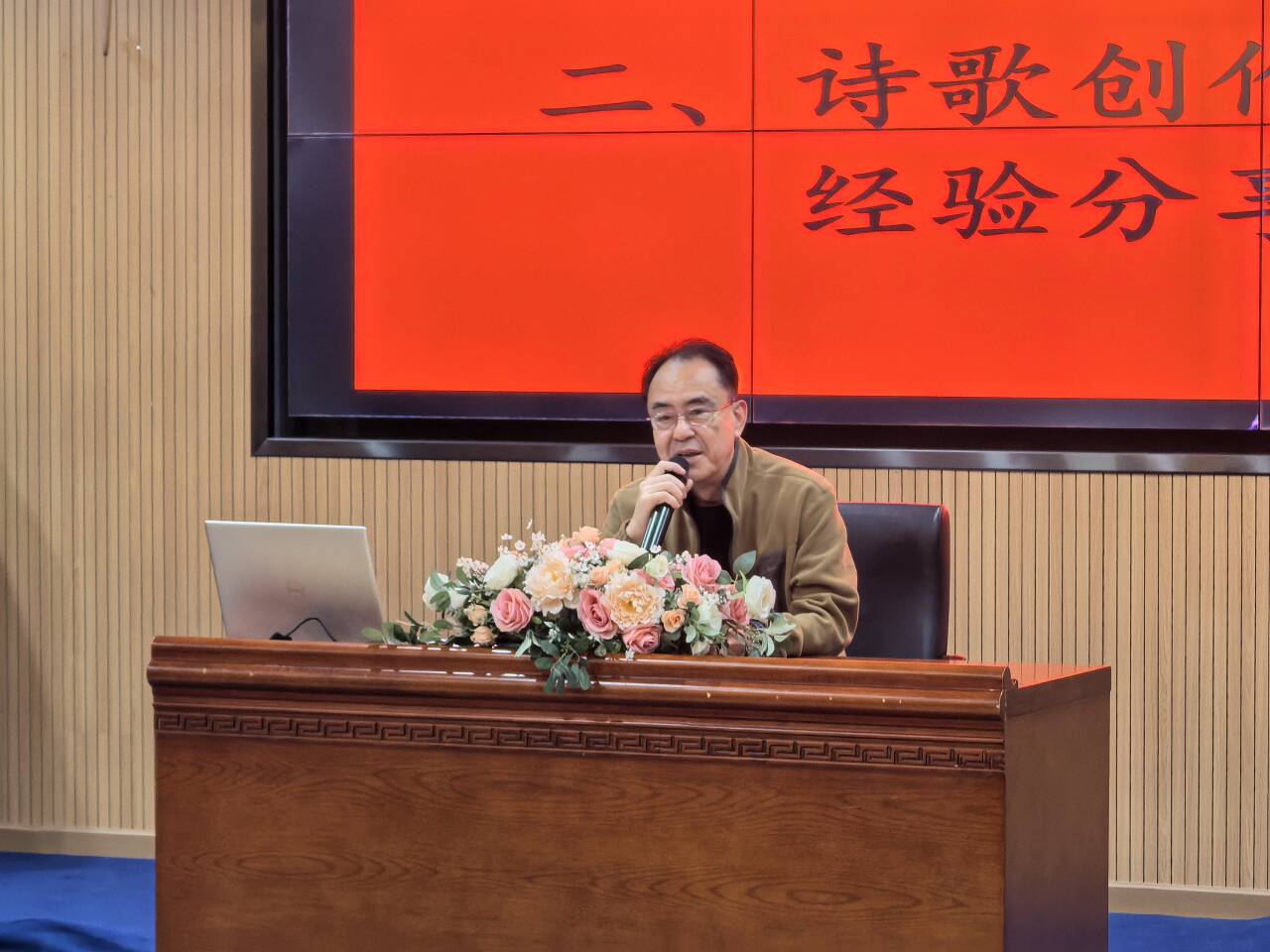 武汉大学博士教授夏冠英以饱含深情的讲述,阐释了“诗意存在于生活每一处”的真谛。他特别强调,诗歌创作要关注现实困境、体现人民情怀,并指出诗歌具有跨越阶层、文化和年龄的社会传播力。
