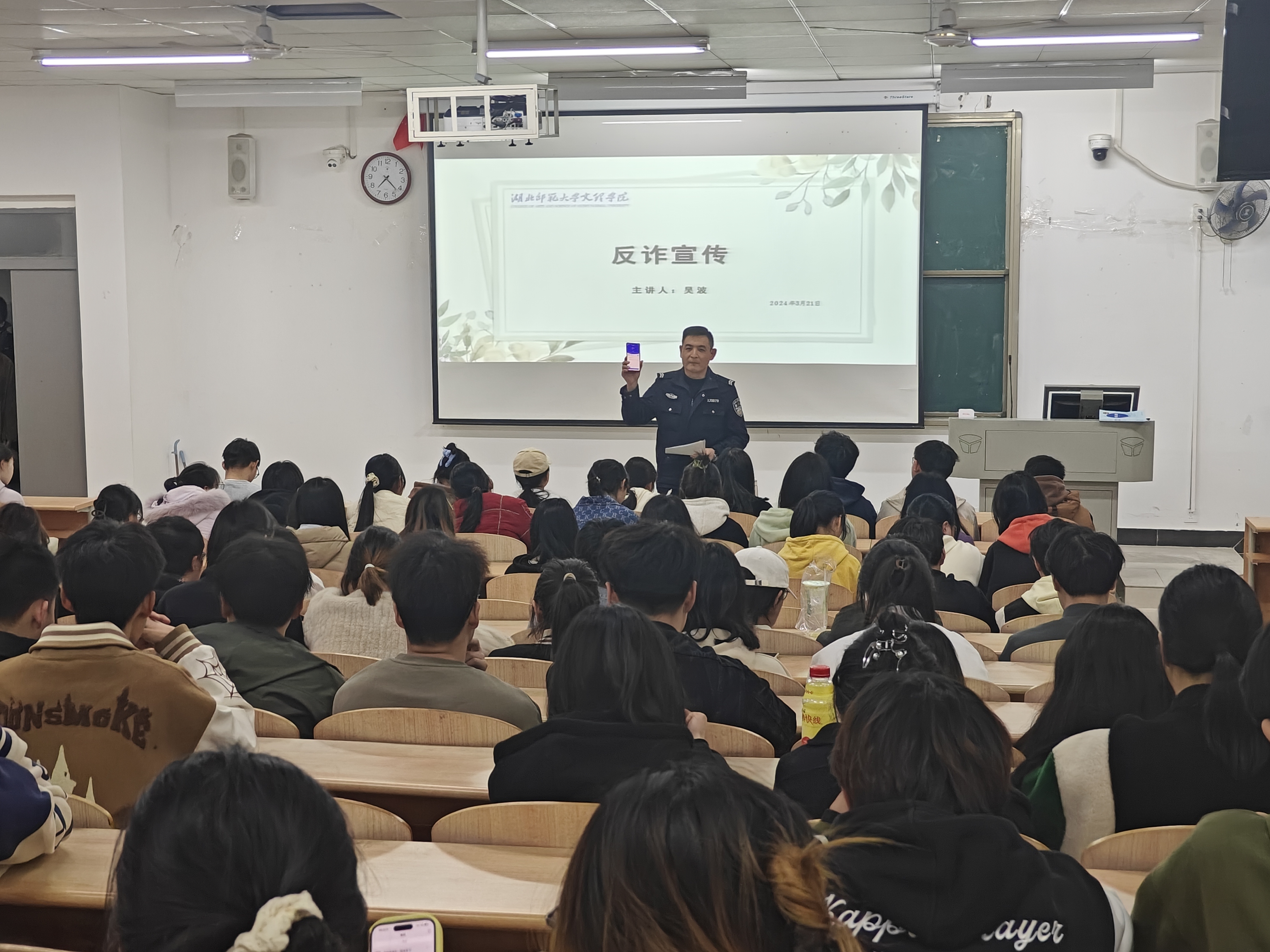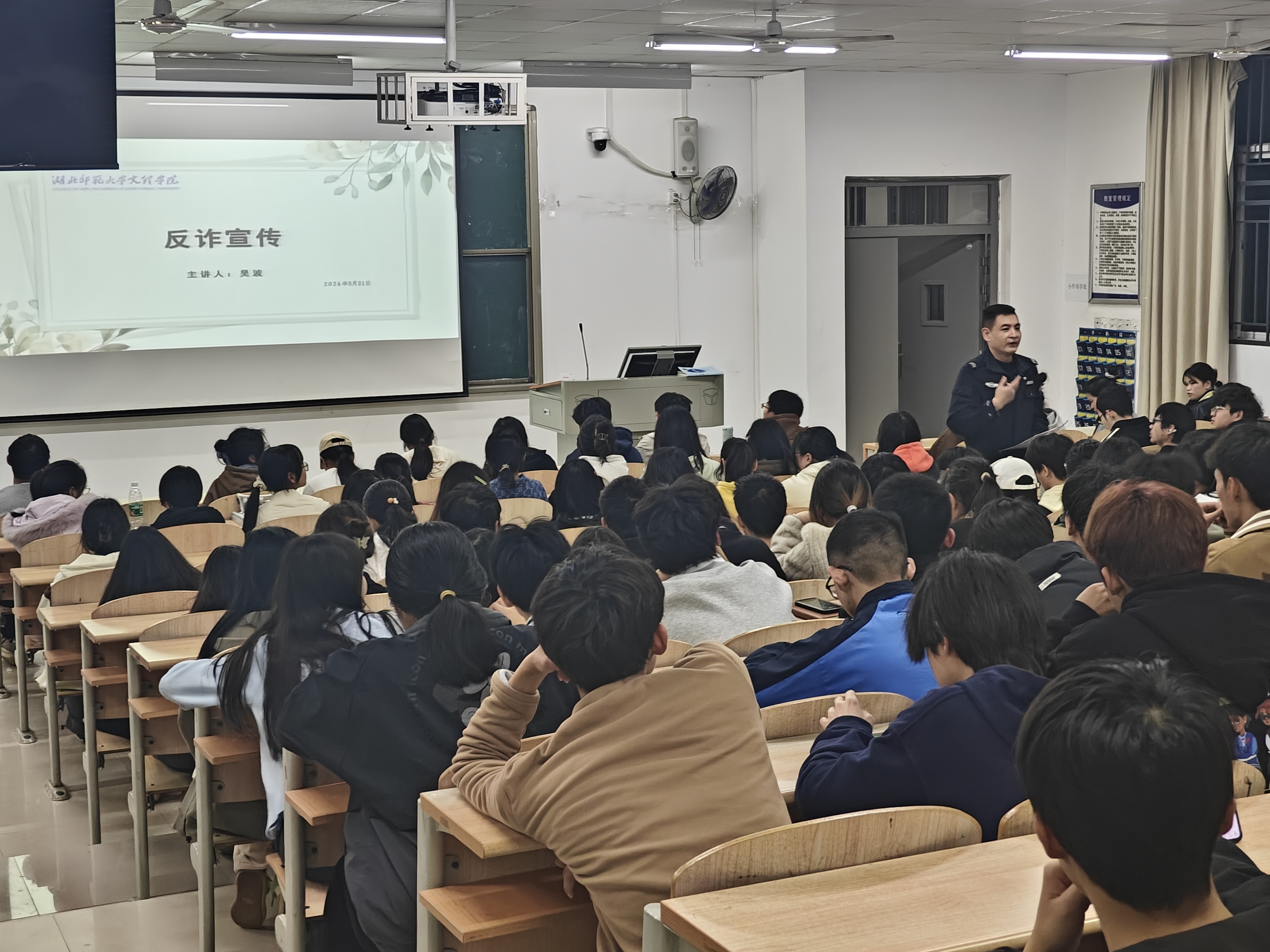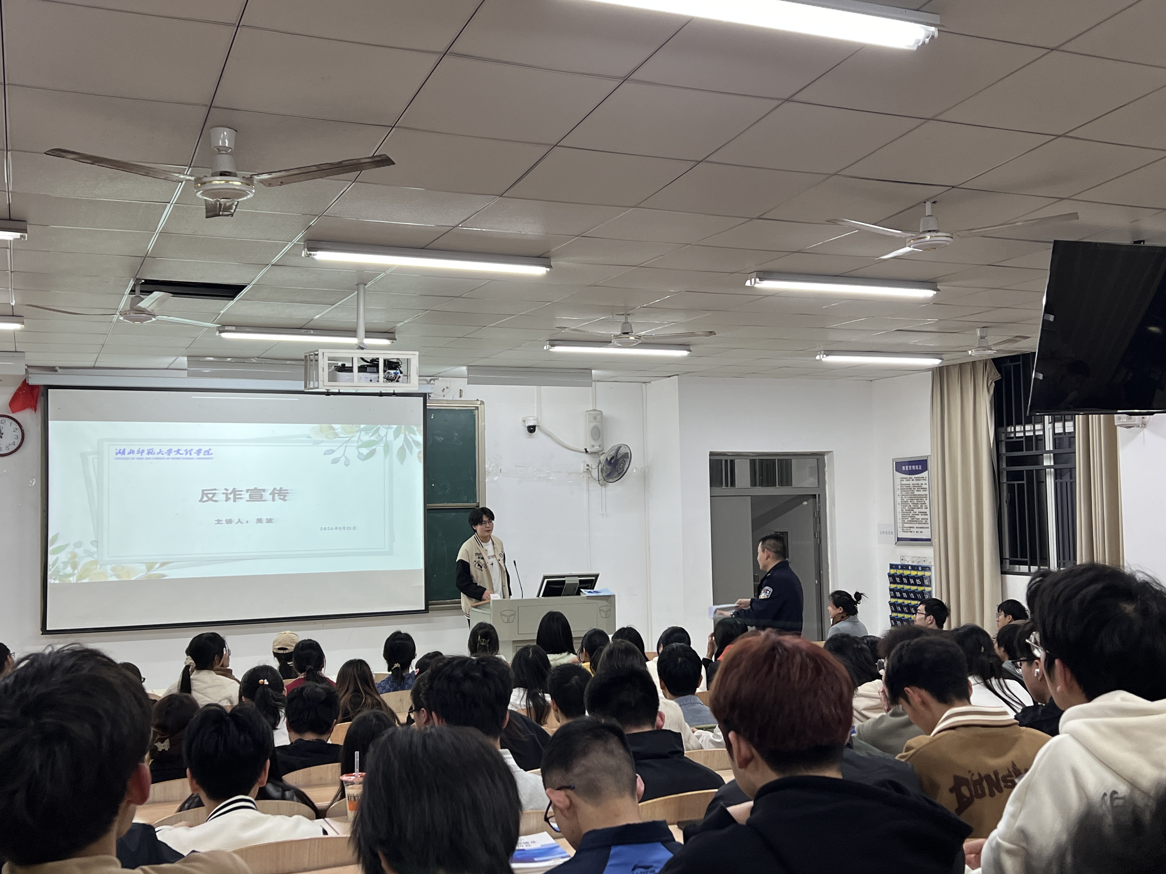 为深入推动mksports在线登录_mk(中国)一站式服务体育创建平安校园工作,不断提升广大师生防诈意识和防骗能力,3月21日晚上7时,理工学部特邀汪仁派出所民警在教学楼1B-101,为约200名青年学子举行了“反电信诈骗”主题讲座,理工学部团总支副书记李哲昊老师,辅导员刘婉婉老师、胡兰捷老师、陆曦老师参加了活动。