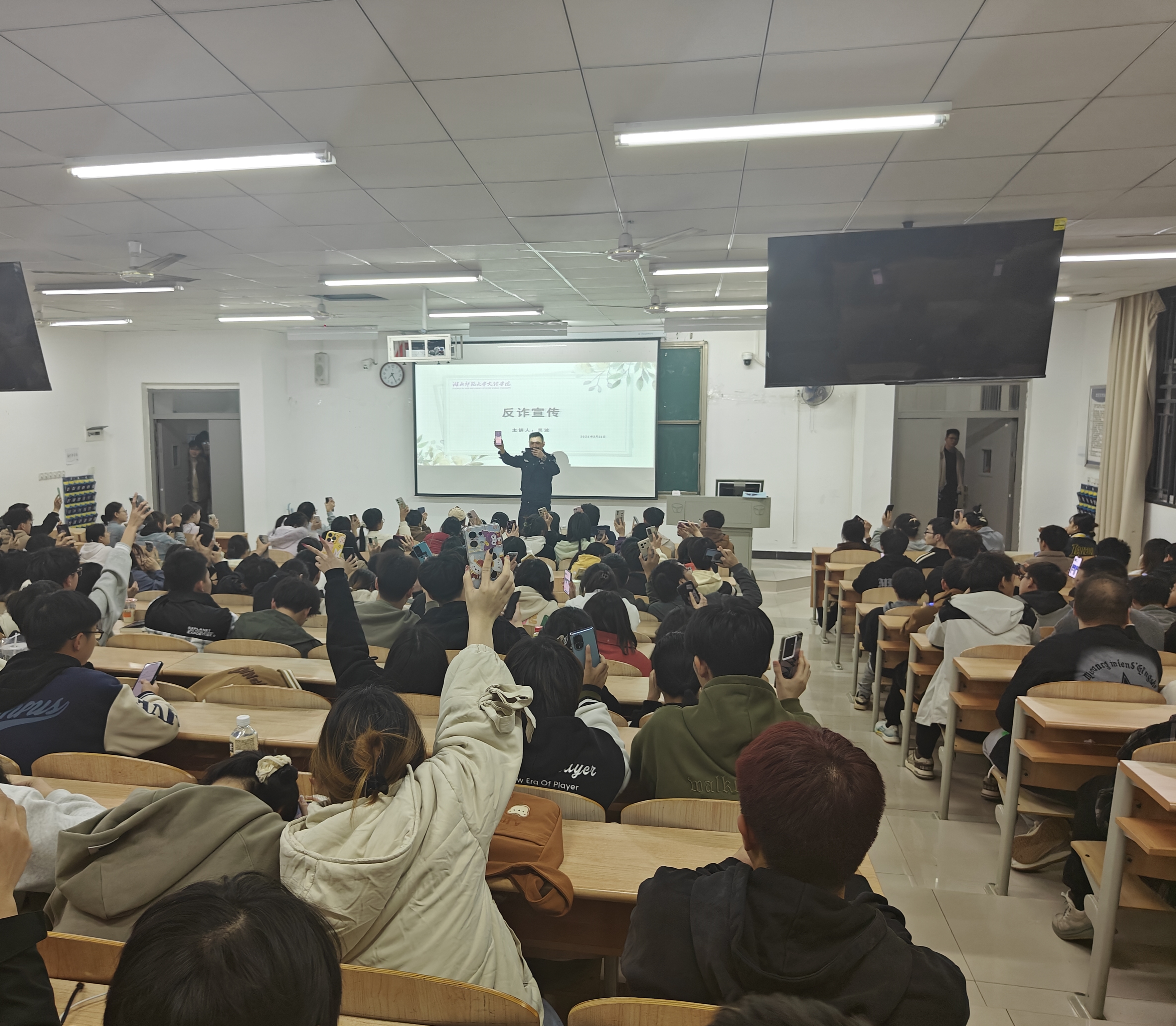 吴警官通过分析身边鲜活的电信诈骗案例,向青年学子讲述了网络刷单、AI智能诈骗、网上购物诈骗等电信诈骗的特点、惯用手段及反诈知识和技巧,引导青年学子擦亮眼睛,守住自我教育、自我管理的第一道关口。