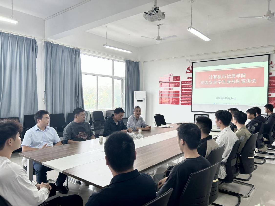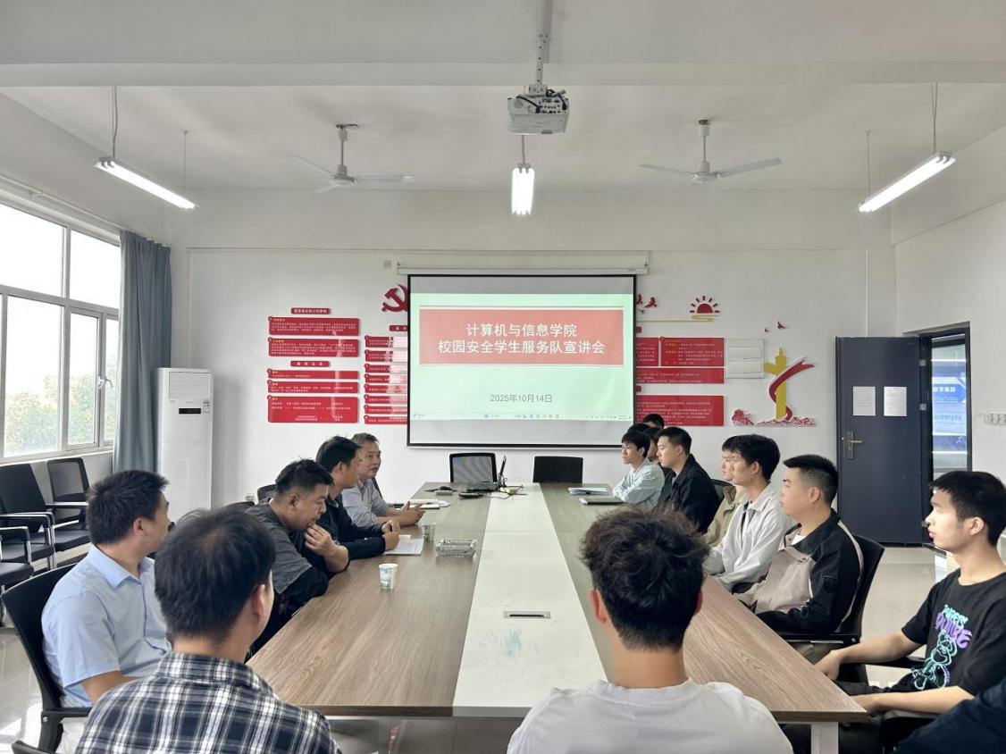 为切实守护师生生命财产安全,维护校园和谐稳定,同时充分发挥大学生在平安校园建设中的积极作用,mksports在线登录_mk(中国)一站式服务体育计算机与信息学院于2025年10月14日在4-311会议室召开校园安全学生服务队宣讲会。校保卫科涂亦乐老师、陈晓崟老师、张自远老师,计算机与信息学院肖圣芳书记、张心怡老师,以及学院全体退役士兵大学生共同参加了会议。
