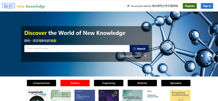 新知学术发现系统”(https://scholar.newacademic.net)集成了学术期刊、会议论文、学位论文、专利、图书等海量中外文学术资源,超过30万全球重点期刊,超过80万个学术数据库和站点,可为老师们提供专业全面的资源检索。(使用方法:校园IP内登录)