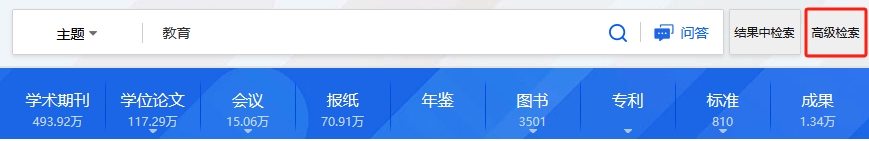(3)在首页点击“高级检索”,在高级检索页面下方切换数据库进入单库高级检索。