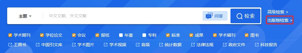 (2)在一框式检索或高级检索页面中的检索设置里删除或添加资源类型