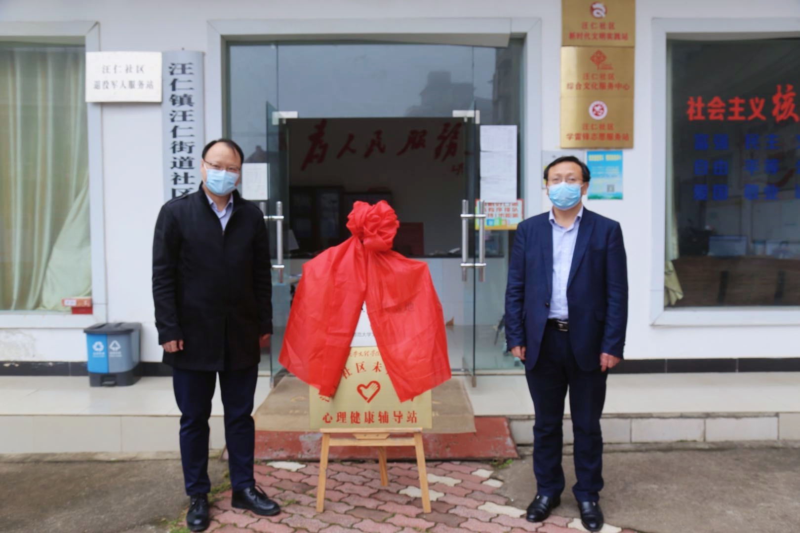 会议第四项,与会领导为汪仁社区“两站”揭牌。