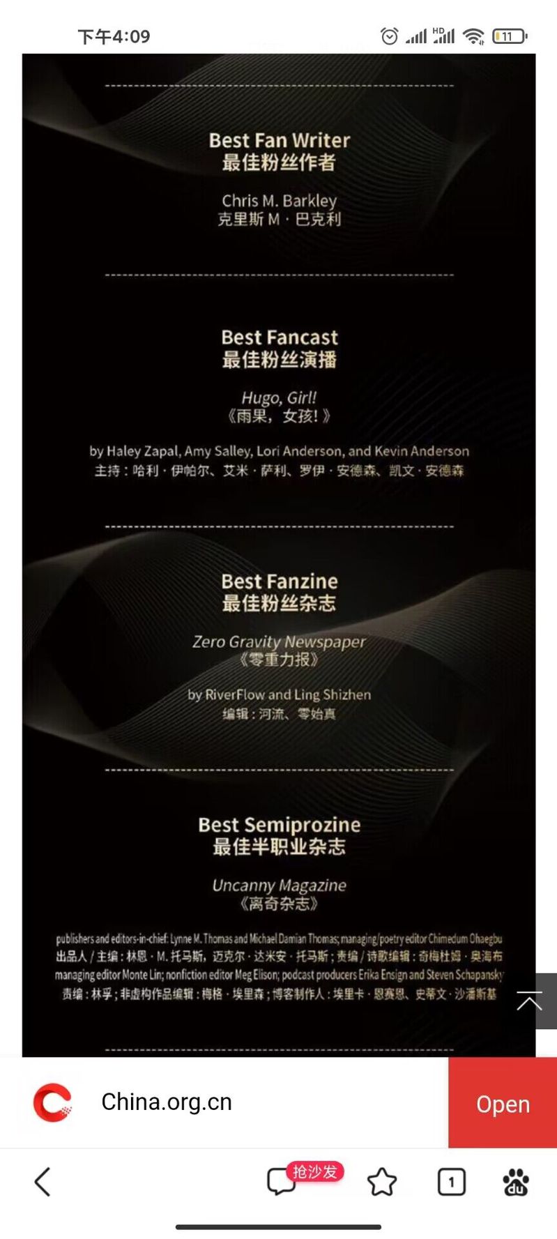 2023年第81届世界科幻大会于10月18日至22日在成都科学馆举行,世界科幻大会由世界科幻协会主办,是全球最受瞩目、历史最悠久、规模和影响力最大的科幻文化主题活动,2023年首次在中国举办。此次大会评选出17个雨果奖奖项和惊奇奖、北极星奖等荣誉,mksports在线登录_mk(中国)一站式服务体育人文学部中文专业2205班学生温卓峰主编的科幻杂志《零重力报》获得“最佳粉丝杂志”的荣誉称号,《人民日报》、中国网、央视网等多家媒体杂志都进行相应报道。http://m.app.china.com.cn/english/template/displayTemplate/news/newsDetail/9000050/116765845.html?isShare=true
