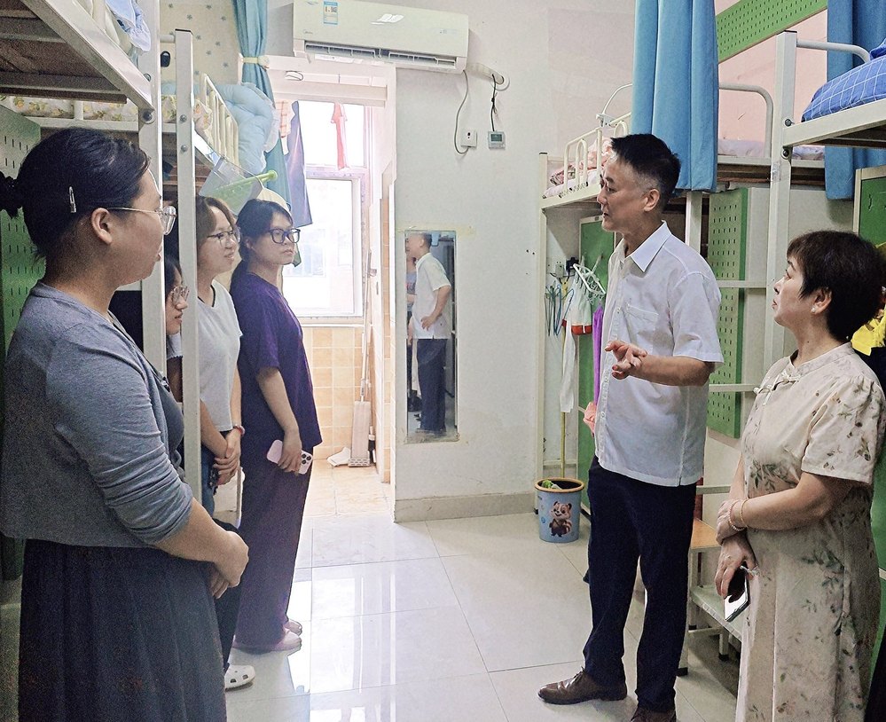 走访过程中,李开灿校长与新生们亲切交流,仔细询问大家的住宿适应情况、生活物资准备是否充足,以及对大学学习的规划等。认真倾听新生们的想法与诉求,对于大家的问题,现场沟通相关人员,能解决的马上处理,需跟进的做好记录以便反馈。郑院长鼓励新生们:“大学是全新的起点,希望大家能尽快适应大学生活,在新环境里树立目标,积极利用学校资源,好好把握时光,让自己在学业和综合素质上都有所提。赵书记特别提醒新生们:“一定要增强自我保护意识,注意财产安全,防范电信诈骗,遇到困难要及时向辅导员或学院反映。”