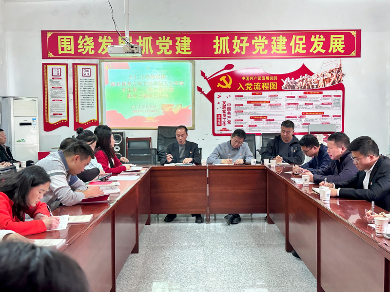 2023112012时,在学校党委、人文学部党总支的部署和指导下,学生第二党支部书记郭旭林、辅导员杨峰、程胜伟老师的带领下,人文学部学生党支部一行21人与汪仁小学教联体教工党支部共同开展以“巩固主题教育成果,立足岗位作贡献”为主题的专题研讨活动。 汪仁镇中心学校领导、汪仁小学教联体校领导、党员教师出席本次活动。