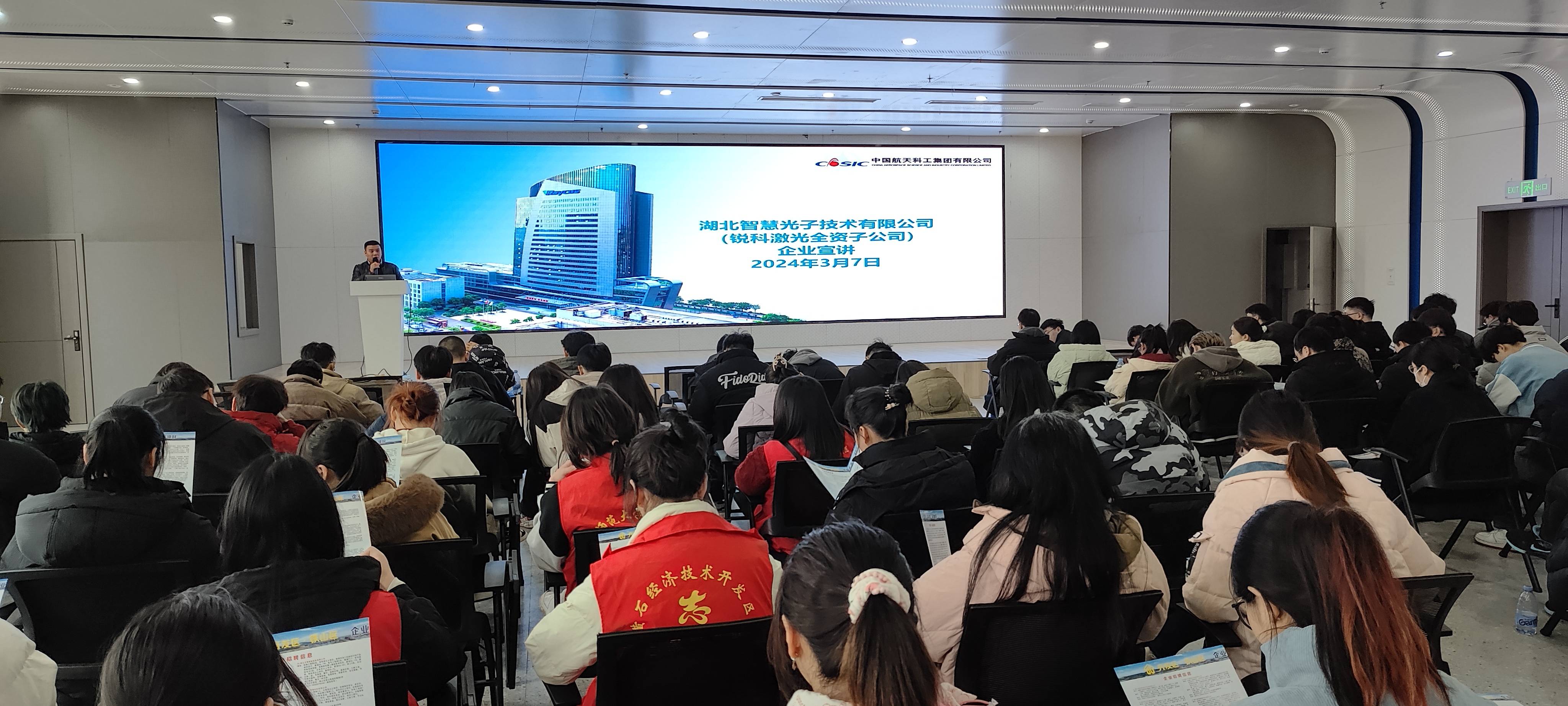 在闻泰集团人事部刘专员讲解引领下,众师生一行参观了闻泰园区、展厅、食堂及职工宿舍并组织观看了闻泰集团的企业宣传片,使学生了解半导体IDM、光学模组、通讯产品等产业链布局。随后,参观了智慧光子集团:通过观摩展品,认识了精密零器件的奥妙。通过参观车间生产线,知晓了现代化管理标准。人事资源部曹部长通过宣讲会,一起回顾了集团艰苦创业的历程,阐释了光纤激光器的进展,读懂企业对“锐意进取,科技创新”精神的认识,增加了对企业的认同感。最后,开铁区人才中心叶局长给学生们派发了小礼品。
