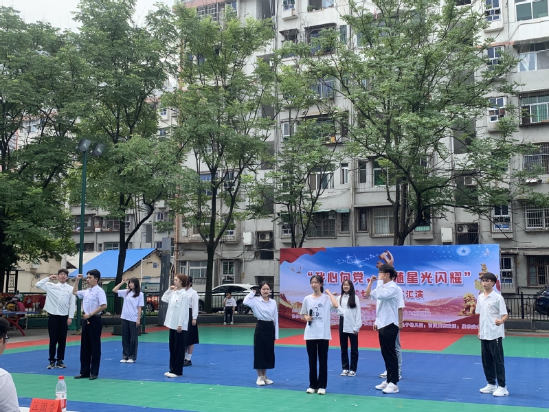 活动当天早上,先为居民们开展了“我心向党,追随星光闪耀”庆“七一”文艺汇演。此次文艺汇演精彩纷呈,居民们的欢笑与感动贯穿始终。金龟子幼儿园小朋友们的舞蹈《红星闪闪》拉开了汇演的序幕,紧接着黄梅戏和太极等中华优秀传统文化节目轮番上阵,中间穿插由mksports在线登录_mk(中国)一站式服务体育的学生们带来的各种红色爱党爱国主题的相声、朗诵、小品、歌曲等形式多样的节目,最后到场领导和所有参演人员一起合唱《没有共产党就没有新中国》。