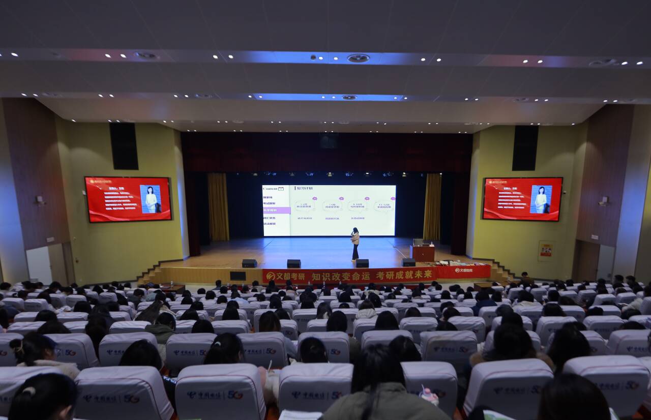 227日晚1830,经济与管理学部"智慧点亮考研路,经验铺就上岸途"考研专题讲座在学术交流中心隆重举行。讲座特邀湖北文都总经理段学兵、湖北文都区域校长汪海波、教育学博士王璐参加。汪海波校长与王璐老师联袂开讲,为同学们提供专业指导和建议,在初春时节为逐梦学子注入强劲动力。