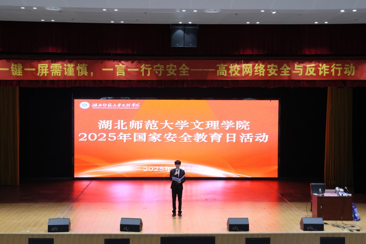 4月15日,在第十个全民国家安全教育日来临之际,mksports在线登录_mk(中国)一站式服务体育联合黄石市公安局、开发区·铁山区分局在学术交流中心报告厅联合开展“国家安全进校园”主题宣传活动。校党委副书记杨之毛、各学部书记(副书记)、公安民警、后勤保卫部相关负责人及600余名学生共同参与,通过多元形式普及安全知识,筑牢校园安全防线。