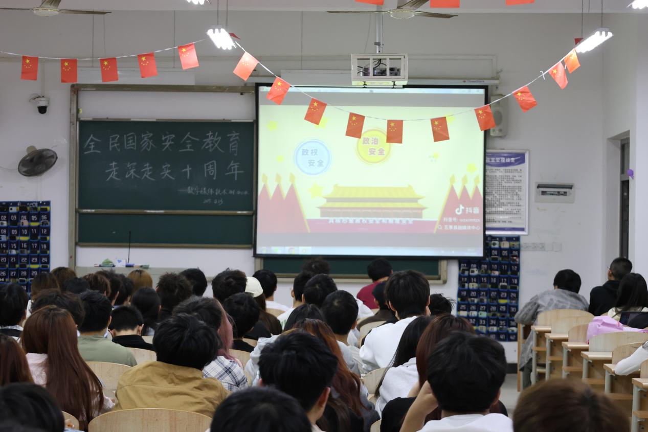 班会首先组织师生集中观看了国家安全主题教育视频《国家安全在心中 时刻警惕不放松》。视频通过典型案例分析和情景再现,生动展现了政治安全、经济安全、网络安全等各领域面临的挑战,并深入解读了总体国家安全观的“五大要素”和“五对关系”。