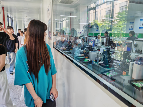 随后,师生深入企业生产车间参观。洁净的环境、精密的设备、严谨的工艺流程令大家印象深刻。同学们近距离观察芯片制造过程,了解从原材料加工到成品检测的全链条生产环节,切身感受到科技企业的专业性与规范性。